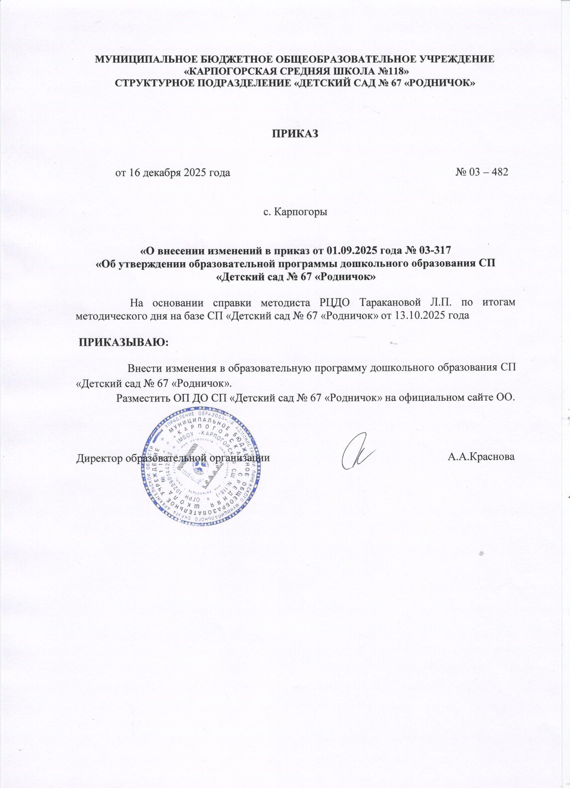 Положение о структурном подразделении “Детский сад №67 “Родничок”