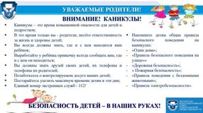 Ответственность за жизнь и здоровье детей, особенно в период школьных каникул, когда у них особенно много свободного времени, лежит на вас, уважаемые родители.