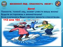 Ребята! Не выходите на лед во время весеннего паводка. Будьте осторожны во время весеннего паводка и ледохода. Не подвергайте свою жизнь опасности!