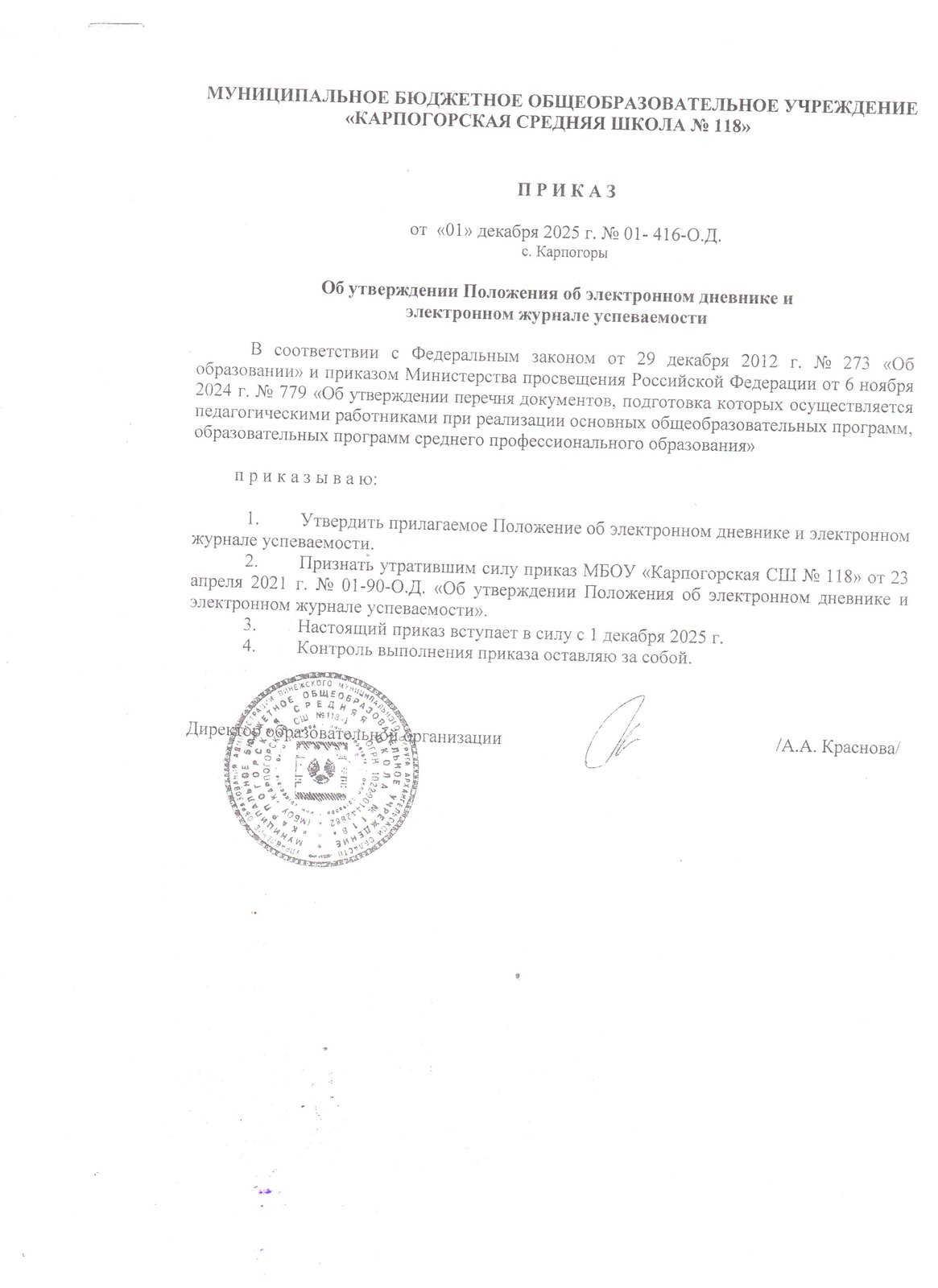 Предписания органов, осуществляющих государственный контроль (надзор) в сфере образования, отчеты об исполнении таких предписаний (до подтверждения органом, осуществляющим государственный контроль (надзор) в сфере образования, исполнения предписания или признания его недействительным в установленном законом порядке) (при наличии)